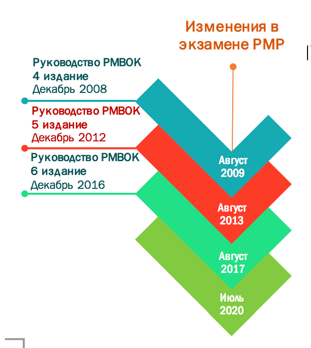 Стандарт с какой-то периодичностью обновляется и развивается. Меняется содержание материалов и сам экзамен. В июле 2020 года Институт управления проектами PMI планирует поменяет экзамен Project Management Professional (PMP).