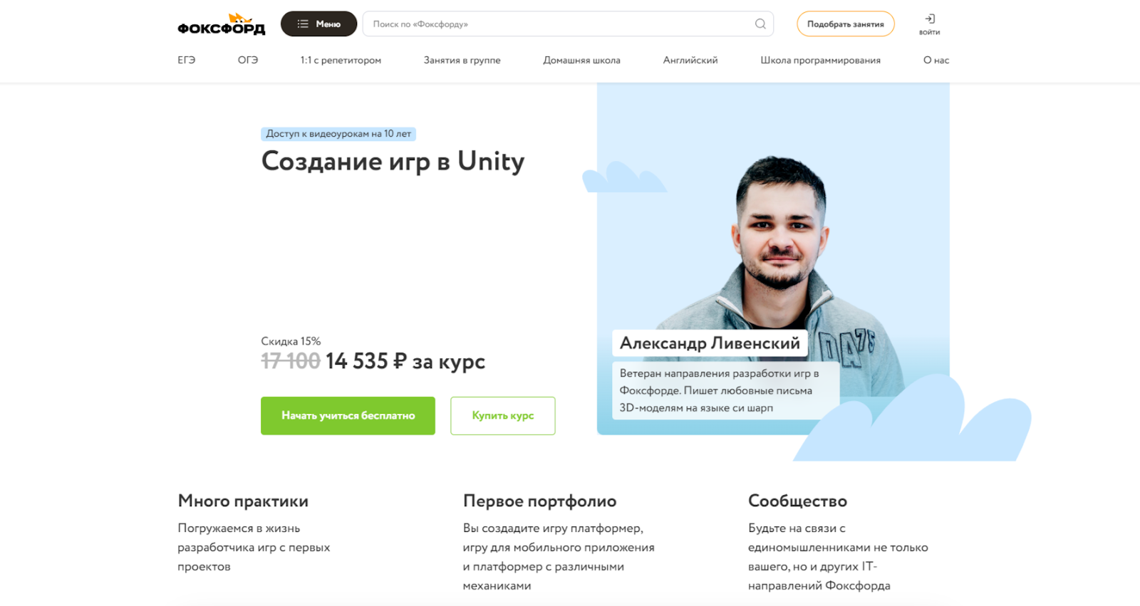 Сведения о цене: онлайн-курс целиком стоит 17 100 рублей.